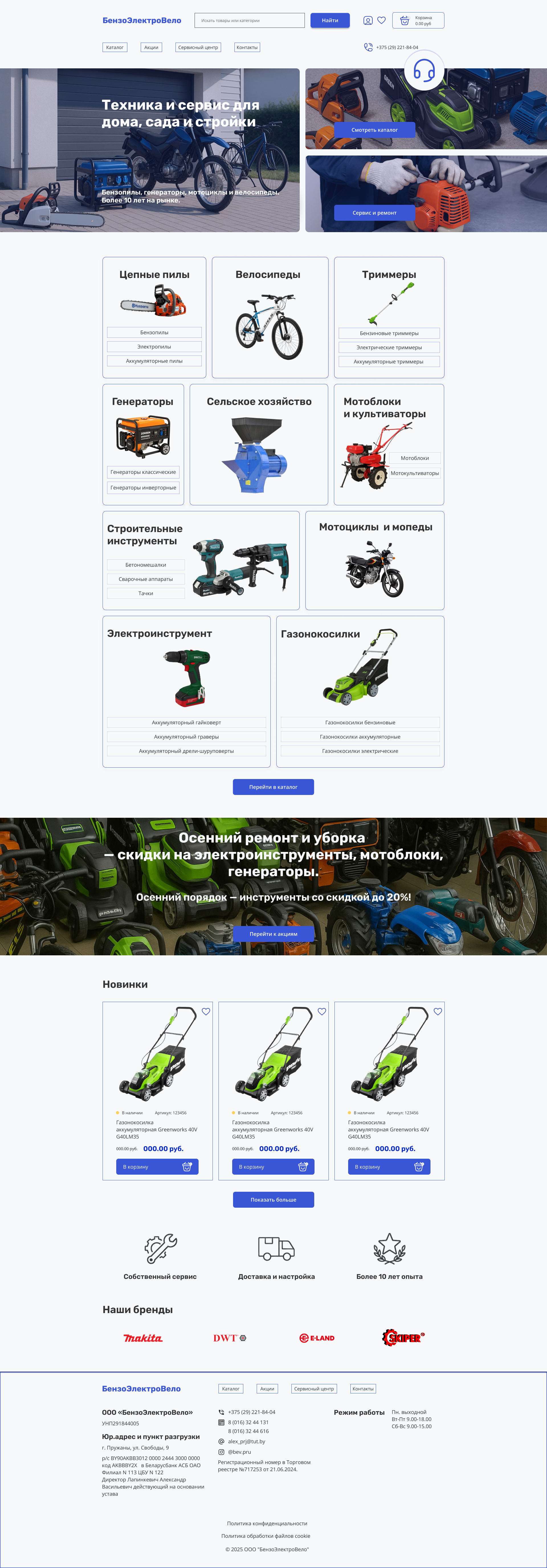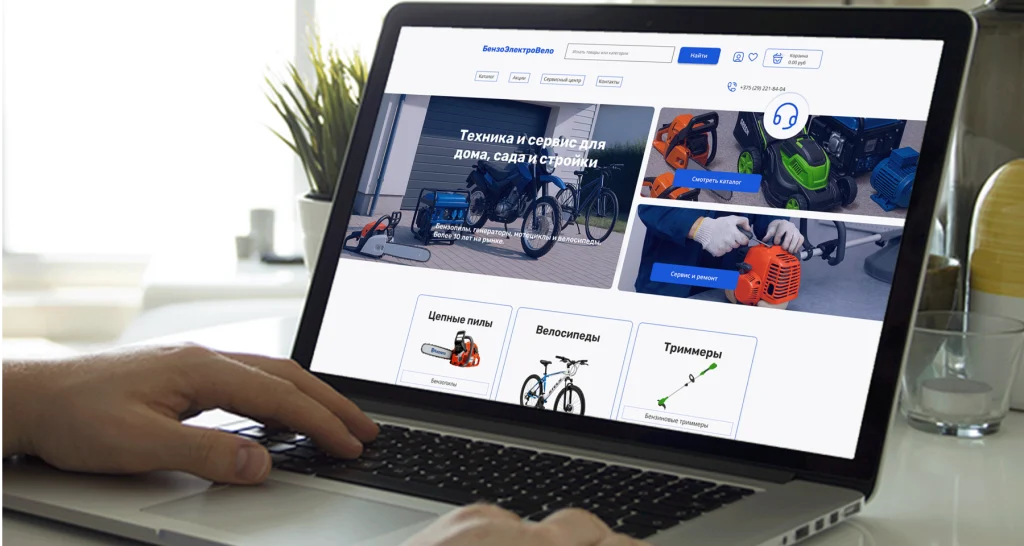 Разработка интернет магазина для ООО «БензоЭлектроВело» — белорусская компания, более 10 лет занимающаяся продажей и обслуживанием техники: бензопил, триммеров, генераторов, электроинструментов, велосипедов, мотоблоков и другой садовой и строительной техники.